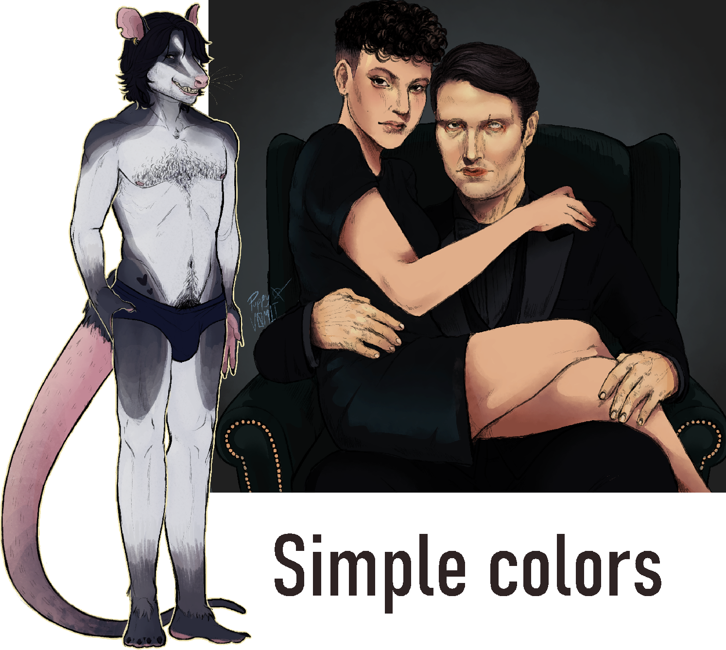 Personal use only — personal prints, pins, stickers = OK, just don’t sell my artwork.You can use purchased character designs for merch — as long as your own art is used.Please tag me (@puppyv0m1t) when posting on social media.Strictly no NFT/AI use — doing so gets you blacklisted.Finished work may be used in my portfolio/socials — let me know if you’d like to stay anonymous.
